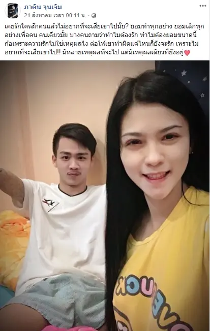 หลังเคลียร์ประเด็นกับอดีตว่าที่ภรรยา มะนาว จุฑาทิพย์ ทั้งเรื่องค่าจัดงานแต่ง, คบซ้อน, ลูกในท้องมะนาว รวมถึงภาพหลุดสุดฉาว ถึงตอนนี้ ภาคิน จุนเจิม กลับมาโลดแล่นบนโซเชี่ยลทั้งเฟซบุ๊กและอินสตาแกรม ซึ่งข้อความต่างๆใต้ภาพคู่กับสาวแอมมี่บ่งบอกชัดเจนว่าเจ้าตัวพร้อมจะผ่านเรื่องราวเลวร้ายเดินหน้าสู้ต่อไปแล้ว