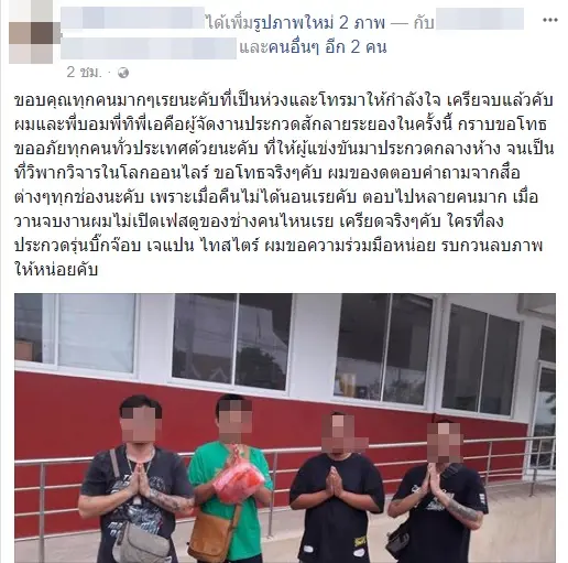 งานประกวดรอยสักดังกล่าวถูกจัดขึ้นเมื่อวันที่ 17 -18 ก.พ. ที่ผ่านมา ณ ห้างสรรพสินค้าแหลมทอง อ.เมือง จ.ระยอง ภาพที่ออกมาเป็นการเปลือยกายโชว์รอยสักทั้งชายและหญิงซึ่งบางรายถึงขั้นใช้ผ้ากุมของลับไว้กลางพื้นที่สาธารณะที่มีผู้คนมากมาย