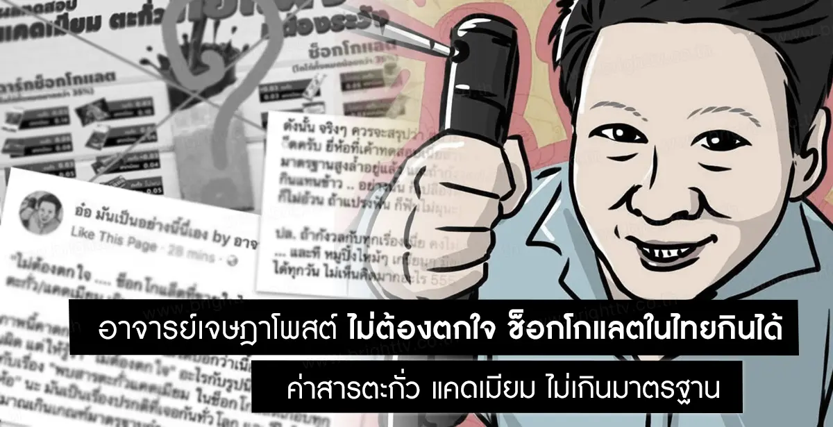 อาจารย์เจษฎาโพสต์ ไม่ต้องตกใจ ช็อกโกแลตในไทยกินได้ ค่าสารตะกั่ว แคดเมียม ไม่เกินมาตรฐาน