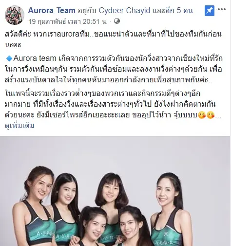 เอาล่ะ! ใครอยากสมัครเป็นแฟนคลับสาวนักวิ่งสุดสวยเชียงใหม่ Aurora Team ก็ติดตามพวกเธอได้แล้วตั้งแต่วันนี้ รับรองว่าคุณจะมีแรงบันดาลใจในการออกกำลังกาย และพบเซอร์ไพรส์มากมายจาก ออโรร่า ทีม ที่สาวๆเขาการันตีว่ามีให้ชมกันแน่ๆต่อจากนี้