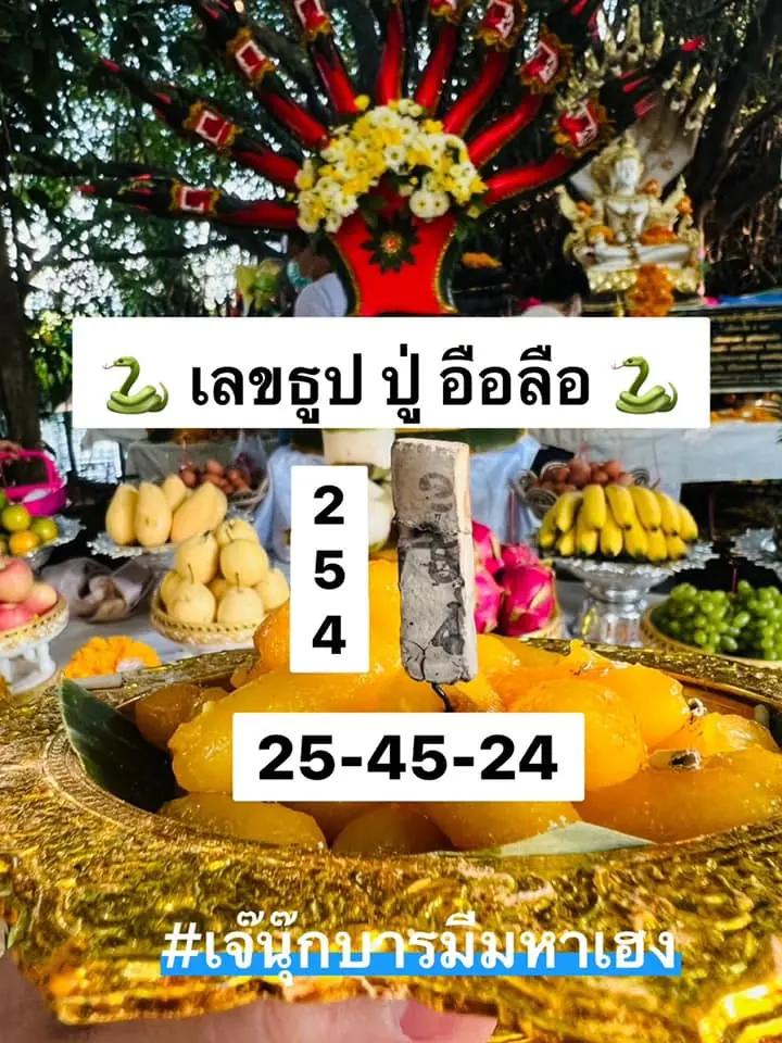 ทั้งนี้ล่าสุด เจ๊นุ๊กยังได้ให้เลขธูปปู่อือลือ มาเพิ่มอีกนั้นก็คือ 2 – 5 – 4 แตกตัวเลขได้ดังนี้