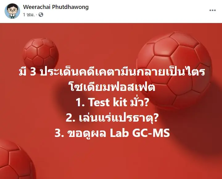 22 พ.ย. 63 รศ.ดร.วีรชัย พุทธวงศ์ หรือ อาจารย์อ๊อด อาจารย์ประจำภาควิชาเคมี คณะศิลปศาสตร์และวิทยาศาสตร์ มหาวิทยาลัยเกษตรศาสตร์ โพสต์เฟซบุ๊กส่วนตัว “Weerachai Phutdhawong” ระบุข้อความว่า