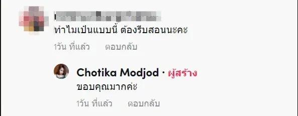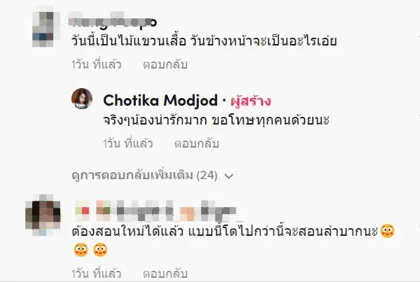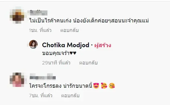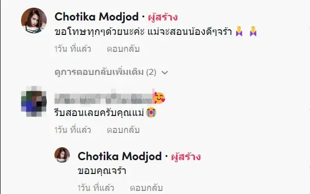 หลังจากที่ได้รับคอมเมนต์เตือนจากชาวเน็ต คุณแม่เจ้าของคลิปก็ได้ไล่ตอบกลับความเห็นของทุกคน และน้อมรับคำเตือนต่างๆ