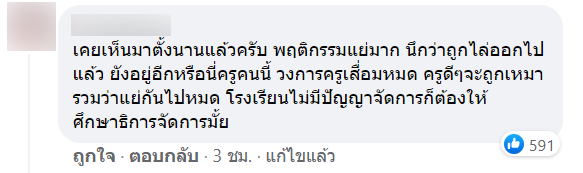 อย่างไรก็ตามเมื่อตรวจสอบไปทางเฟซบุ๊กต้นทางของครูรายดังกล่าว พบว่าได้ลบโพสต์ที่ไม่เหมาะสมต่าง ๆ ออกไปหมดแล้ว และได้ทำการปิดเฟซบุ๊กของตัวเองเป็นที่เรียบร้อย