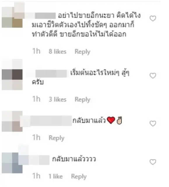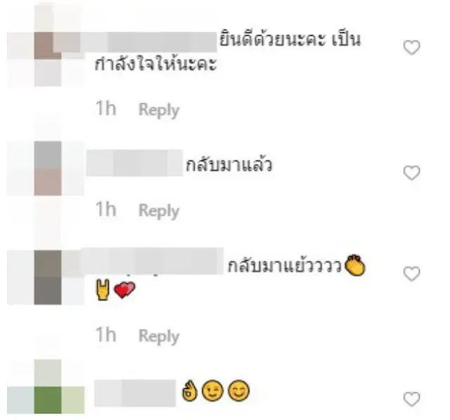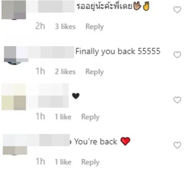 อย่างไรก็ตาม หลังจาก ใบเตย มีงู โพสต์ภาพดังกล่าวออกไปมีชาวเน็ตเข้ามาแสดงความคิดเห็นจำนวนมากโดยมีคอมเม้นท์หนึ่งซึ่งคาดว่าจะเป็นคนสนิทใบเตย ได้ไปคอมเม้นท์ว่า ลูกแม่!! จากนั้นใบเตยตอบคอมเม้นท์ดังกล่าวว่า “ใจจะขาดแล้วแม่” จนผู้ใช้ไอจีรายดังกล่าวนั้น ได้โพสต์ความยินดีหลังที่เธอออกมาโดยระบุว่า กลับมาบ้านเราสามคน นะลูกนะ