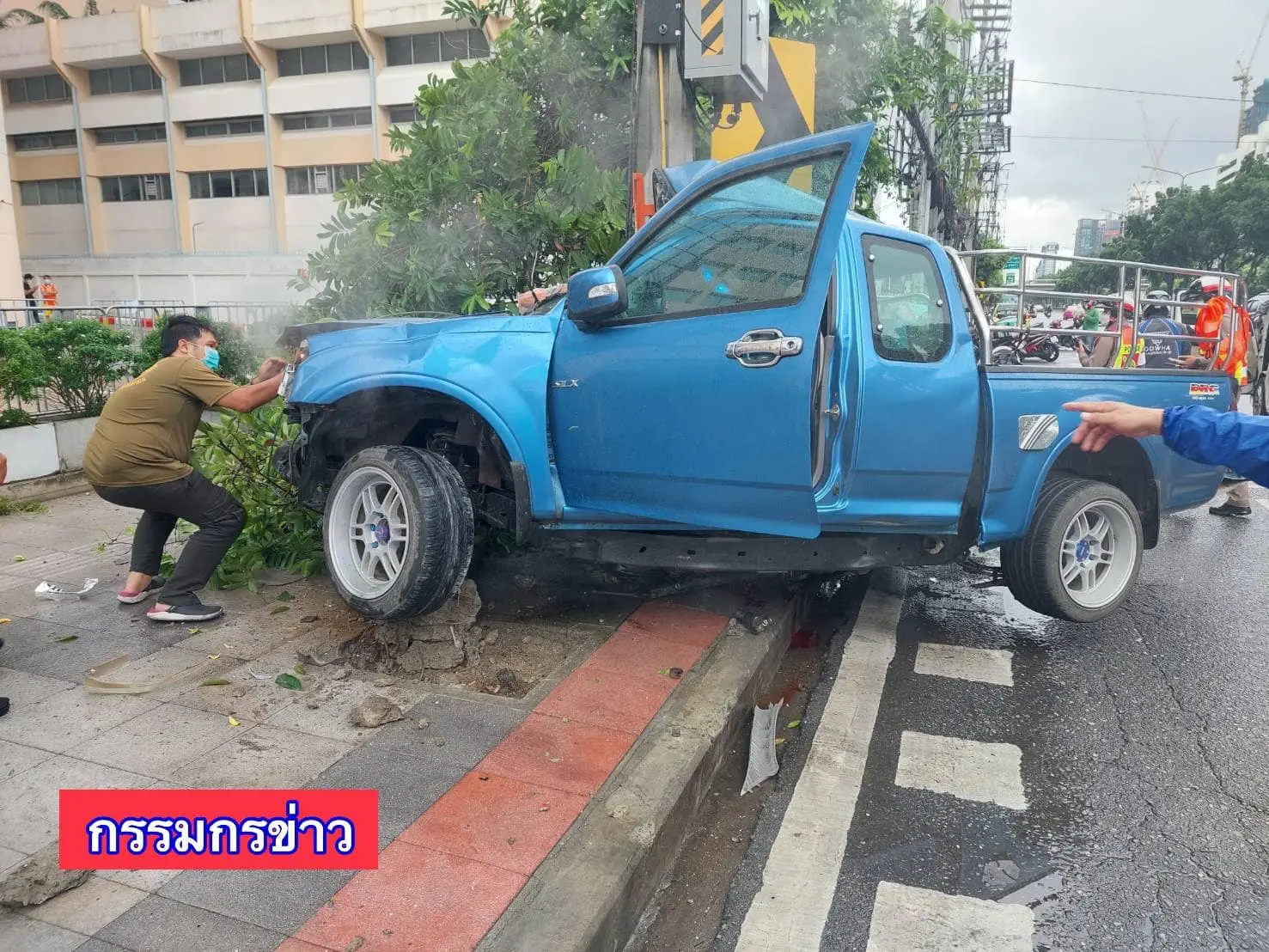 โค้งร้อยศพ! สลดแต่เช้า กระบะเสียหลักพุ่งชนเสา ตายคาที่ 5 สาหัส 3 คาดถนนลื่น