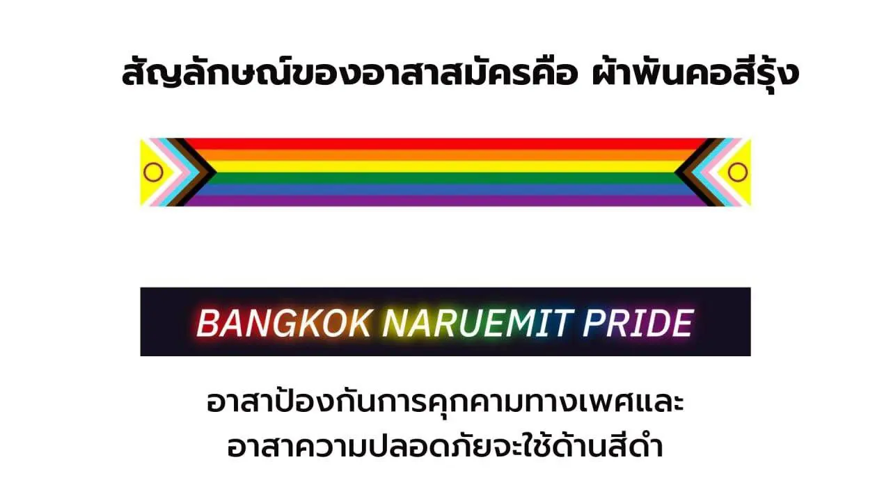 Bangkok Naruemit Pride 2022 มีอาสาสมัครค่อยช่วยเหลือทุกท่านที่เข้าร่วมงาน จะเป็นลม หลงทาง เจอคุกคาม หากเห็นสัญลักษณ์นี้เรียกได้เลย