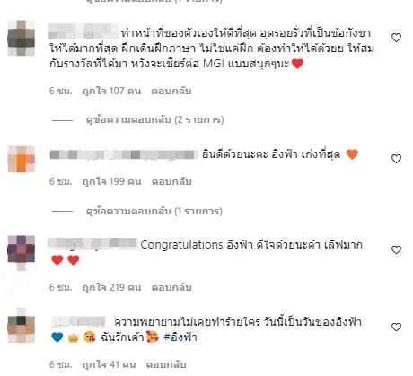 เหล่าบรรดาแฟนคลับต่างก็เข้ามาคอมเมนต์แสดงความยินดีกับ อิงฟ้า วราหะ มิสแกรนด์ไทยแลนด์ 2565 กันอย่างเนืองแน่น