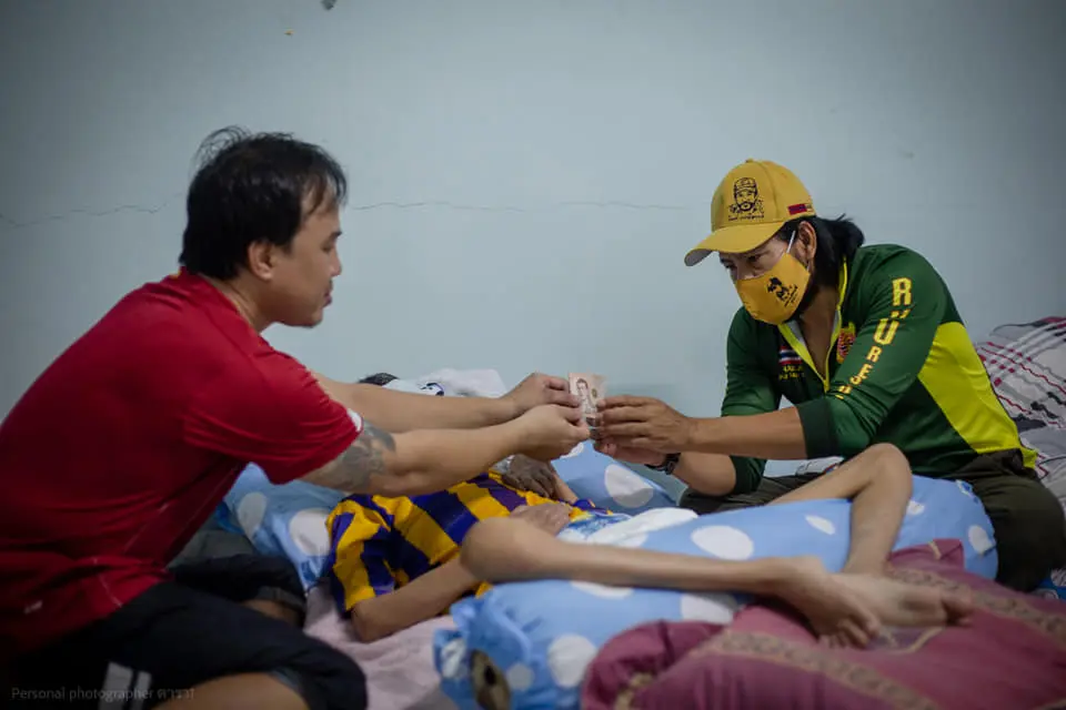 ผมมีแม่คนเดียวที่ต้องคอยดูแล ตอนนี้ผมทำงานใช้หนี้เขาอยู่ครับ ไม่มีเงินจุนเจือผมและแม่เลย คุณพี่ช่วยผมหน่อยนะครับ นี่คือคำพูดของลูกชายผู้ที่เฝ้าดูแลแม่ตลอดกว่า5ปี ผมเป็นคนชื่นชมผู้ที่ดูแลคุณแม่เฝ้าถนอมแม่ยามเจ็บป่วย ผมเดินทางมาทันที่ สภาพก็อย่างที่เห็นในรูปครับ แม่ต้องนอนอยู่ในห้องคนเดียวในยามที่เขาออกไปทำงาน บางช่วงเขาต้องรีบกลับมาดูแลแม่เอาอาหารป้อนทางสายยาง เมื่อเสร็จแล้วก็รีบกลับไปทำงาน คุณแม่เนื้อตัวสะอาดดีมาก นี่ทำให้เห็นถึงการดูแลเป็นอย่างดี