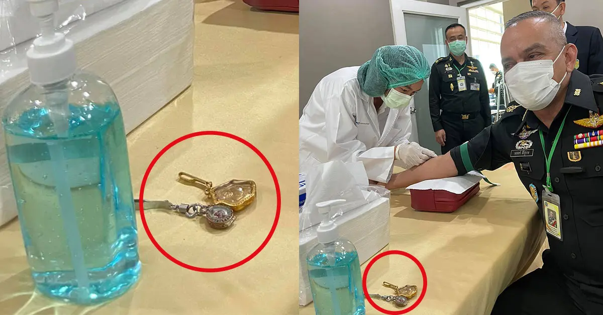 ไม่เชื่ออย่าลบหลู่ แต่ของเขาแรงจริงๆ สุดอึ้งเมื่อ “บิ๊กแขก” พลเอก นเรนทร์ สิริภูบาล ผบ.นทพ. มาเข้ารับการตรวจการฉีดวัคซีนกับครอบครัว กลับต้องงงกันหมด เมื่อไม่สามารถแทงเข็มไม่เข้าเนื่องได้ เป็นเหตุให้ต้องถอดพระออกวางบนโต๊ะ ก่อนที่คุณพยาบาลจะสามารถแทงเข็มเข้าเนื้อได้ เรียกได้ว่า งานนี้มีขนลุกไปตามๆกัน