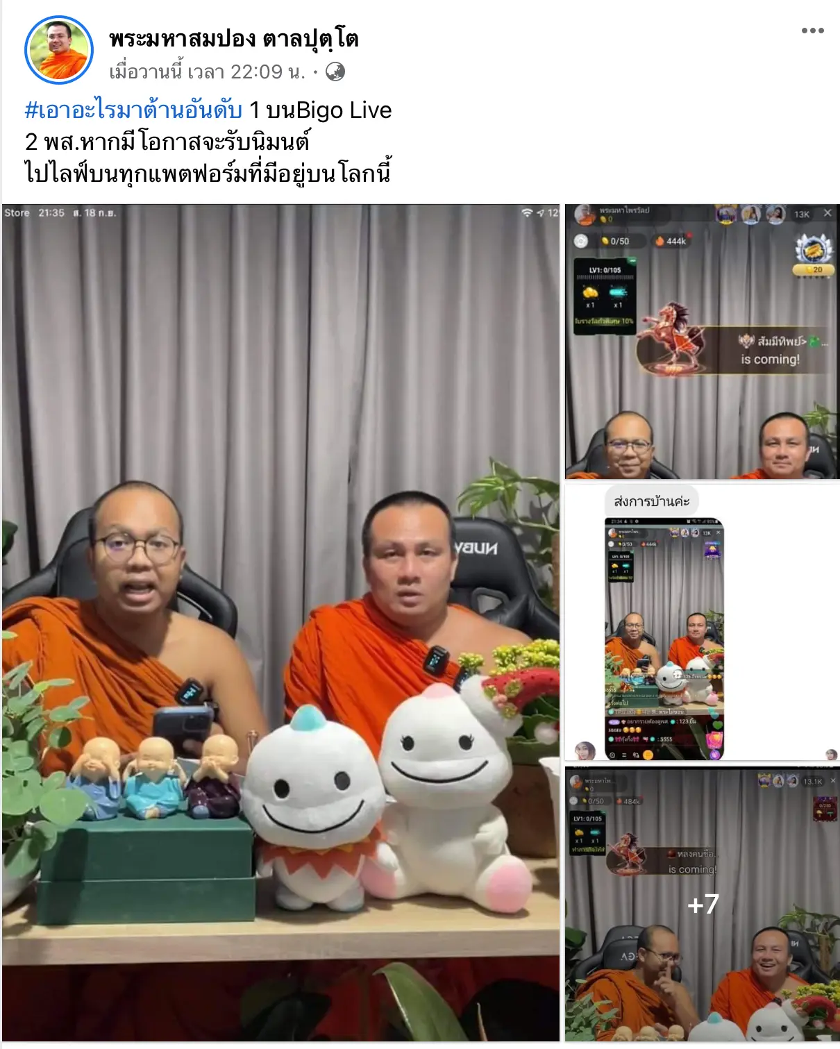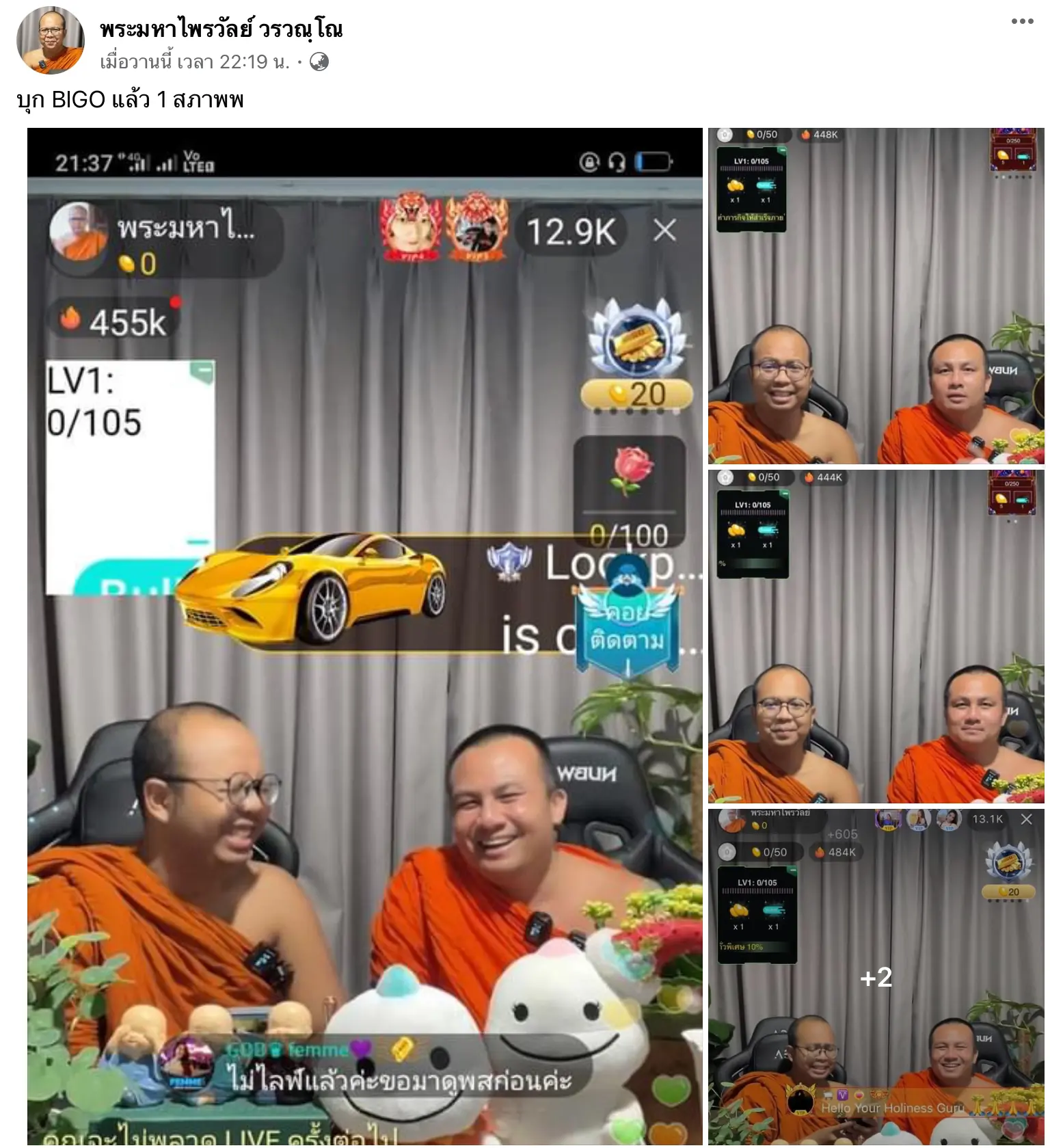 2พส พระมหาสมปองและพระมหาไพรวัลย์ รัรบนิมนต์ Bigo Live มาแรงอันดับ 1 ลั่น หากมีโอกาสจะรับนิมนต์ ไปไลฟ์บนทุกแพตฟอร์ม