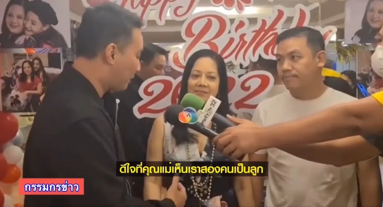 ซึ่งบรรยากาศภายในงานสุดชื่นมื่น ปอ ตนุภัทร และ โรเบิร์ต นายไพบูลย์ หอบของขวัญชิ้นใหญ่มามอบให้ แม่แตงโม ภายในงาน ซึ่งได้มีการพูดคุยอยู่ช่วงหนึ่งพร้อมให้สัมภาษกับสื่อมวลชน ปอ และ โรเบิร์ต ได้มีกล่าวประมาณว่า รู้สึกดีใจที่แม่แตงโมเชิญมางานวันเกิด ซึ่งเป็นเกียรติมาก พร้อมกล่าวว่า “รู้สึกดีใจที่คุณแม่เห็นเราทั้งสองคนเป็นลูก แล้ววันนี้ก็มาขออนุญาตเป็นลูกชายคุณแม่ เพื่อเป็นสักขีพยานในการที่เป็นลูกชายที่ดูแลคุณแม่”