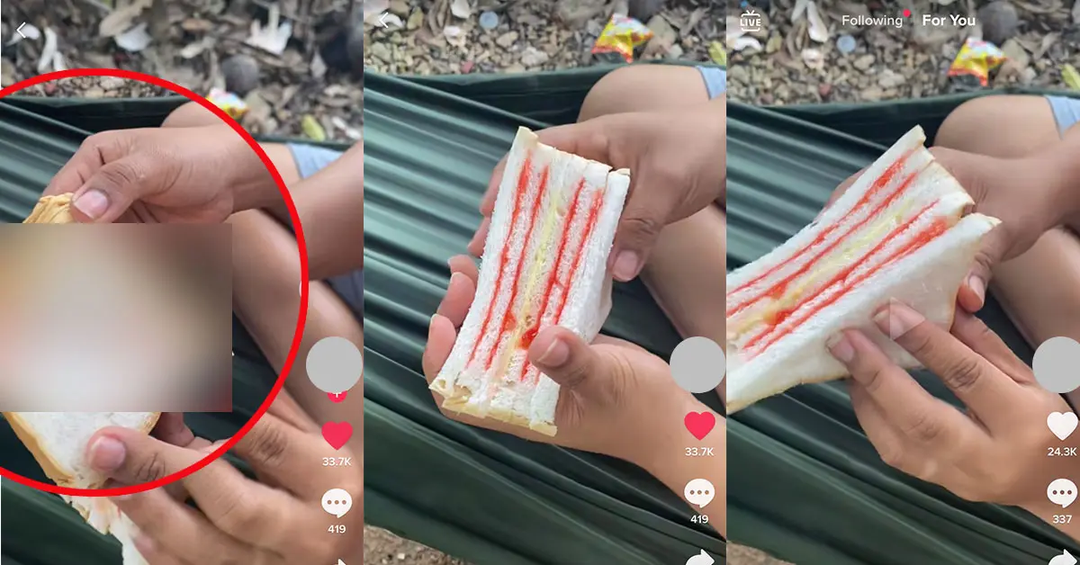 แต่เจ้าขนมปังสามเหลี่ยมแสนจะคุ้นตา กลายเป็นประเด็นจนได้ เมื่อผู้ใช้ติ๊กตอกรายหนึ่ง ได้แชร์คลิปวิดีโอสั้นๆ โดยในคลิปเราจะเห็นขนมปังสามเหลี่ยมหลายแผ่น สอดไส้แยมสตอเบอรี่ สีแดงของแยมและสีขาวของขนมปัง ส่งให้ดูน่าทานไปอีก แต่แล้วความจริงก็ปรากฏ เมื่อเจ้าของคลิปเปิดดูไส้ในขนมปัง ถึงกับงง ว่าที่จริงแล้วไส้แยมมีอยู่น้อยนิด น้อยขนาดไหน ให้ภาพบรรยาย