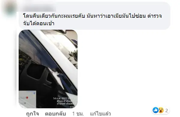 จากเหตุการณ์เมื่อวานวันที่ 14 ก.พ. 65 มีผู้ใช้เฟซบุ๊กส่วนตัวโพสต์เรื่องราวระทึกขวัญ โดยตนมีนัดแต่หน้าลูกค้าในตอนเช้าของวันวาเลนไทน์จึงได้เดินทางออกจากบ้านมาช่วงระยะเวลาประมาณ 02.00 น. เมื่ออกมาดันเจอรถเก๋งคันหนึ่งมีท่าทีขับรถตามตัวเองมา เมื่อสบโอกาสรถเก๋งคันดังกล่าวได้พุ่งเข้าชนรถตัวเอง ซึ่งในขณะนั้นตนได้มากับแฟนหนุ่มจึงเปิดกระจกถามหาสาเหตุ