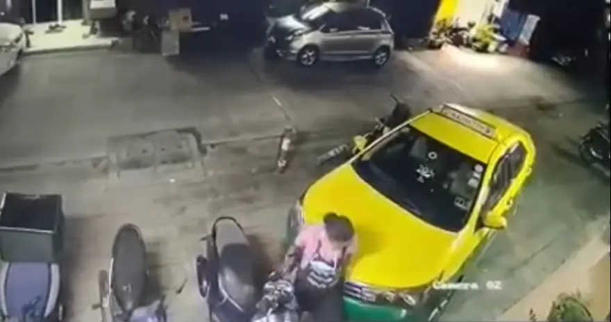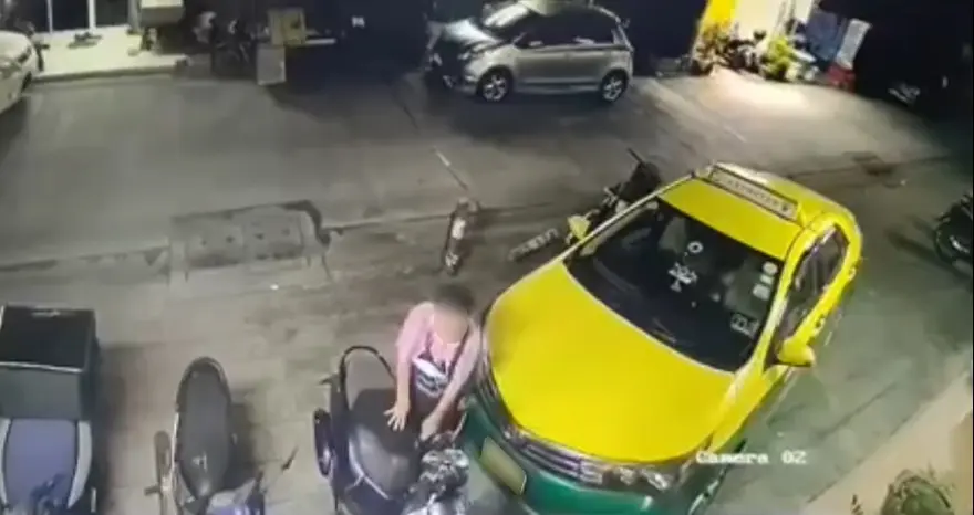 เมื่อไปเปิดภาพกล้องวงจรปิดหน้าอาคารที่ตนจอดพบว่า มีสาวใหญ่รายหนึ่งเดินป้วนเปี้ยนอยู่บริเวณรถมอเตอร์ไซค์ของตน จากนั้นมือของสาวใหญ่รายนี้ทำท่าเหมือนพยายามใช้ของมีคมกรีดลงไปที่เบาะรถแล้วเดินผ่านไป สักพักหนึ่งหญิงรายนี้ก็เดินกลับมาที่เบาะรถอีกรอบ ทีนี้ท่าทีชัดเจนว่ากำลังพยายามกรีดเบาะรถ