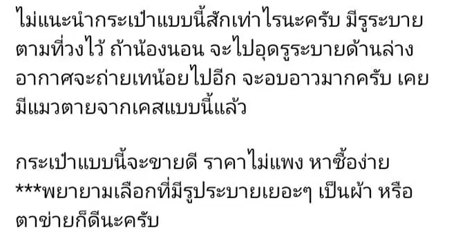 สาวโพสต์ เตือนภัยกระเป๋าแมว แบบสะพานหลัง ไม่ได้ดีอย่างที่คิด รูระบายเล็กเกิน ร้อนอบอ้าว เสี่ยงหายใจไม่ออก อันตรายถึงชีวิต