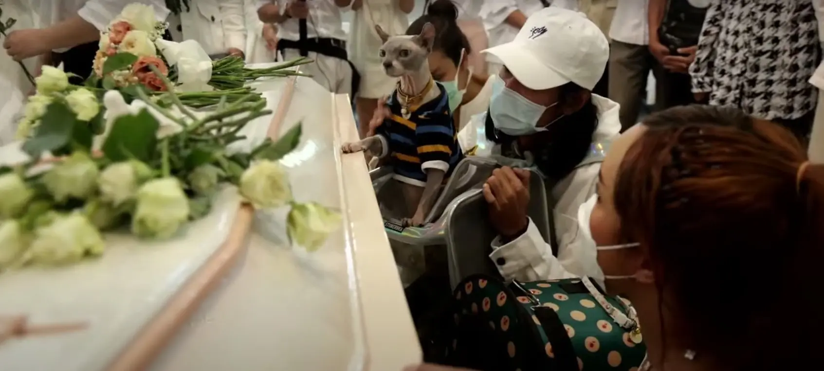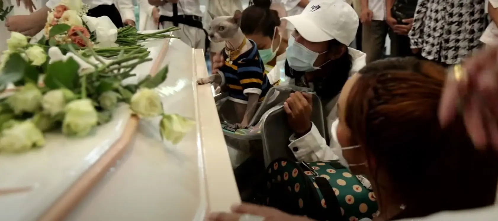 ซึ่งภายในช่วงของการนำดอกไม้สดขึ้นไปวางหน้าโลงบรรจุศพของ แตงโม นิดา ทางด้านเบิร์ด แฟนหนุ่มของ แตงโม นิดา และเพื่อนสนิท ของแตงโม นิดา ได้นำลูกแมว ทั้ง 3 ตัว ของ แตงโม นิดา ขึ้นไปวางดอกไม้หน้าหีบศพ เพื่อเป็นการร่วมส่งร่างอันไร้วิญญาณของ แตงโม นิดา เป็นครั้งสุดท้าย
