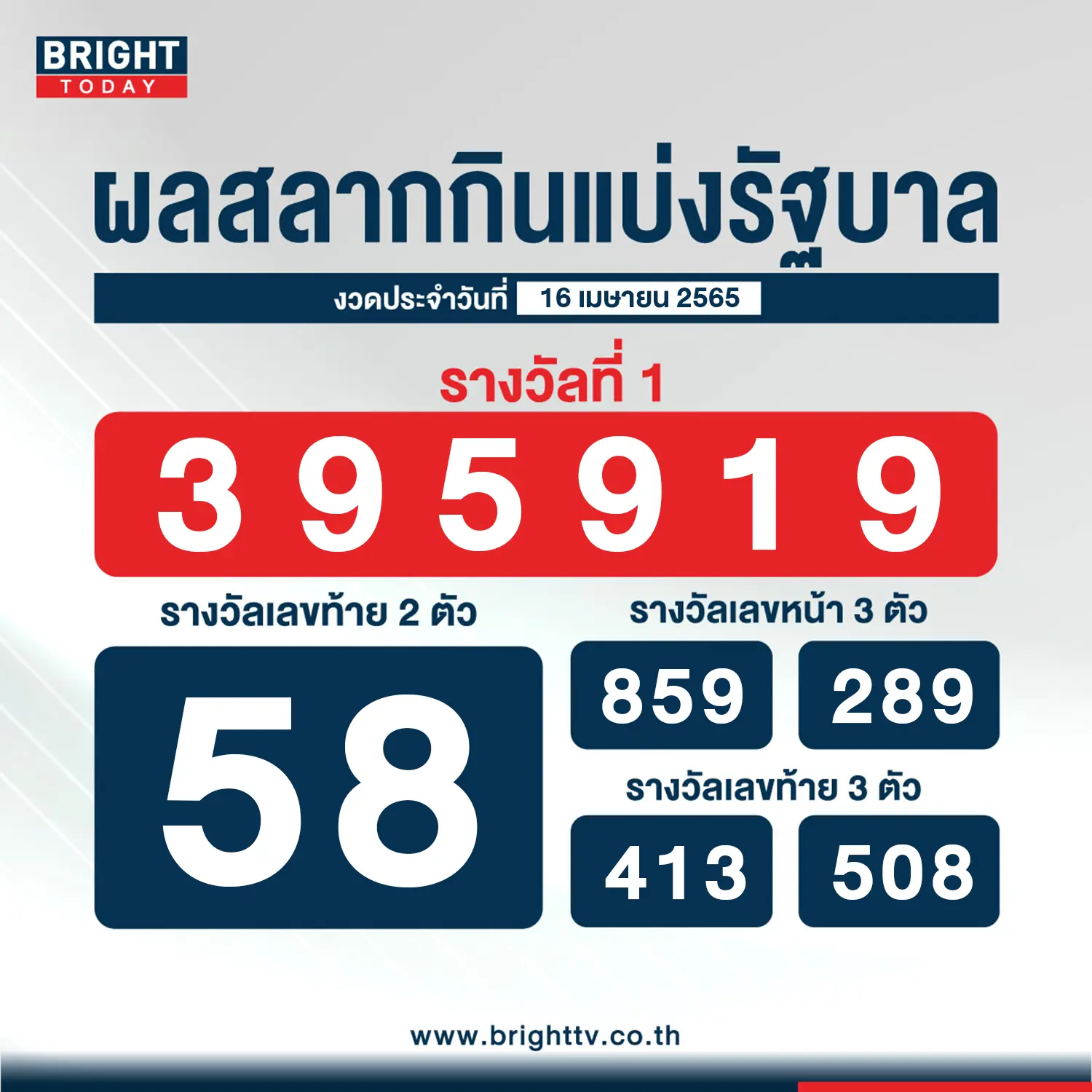 ผลสลากกินแบ่งรัฐบาล 16 เมษายน 2565 รางวัลทั้งหมดมีดังนี้