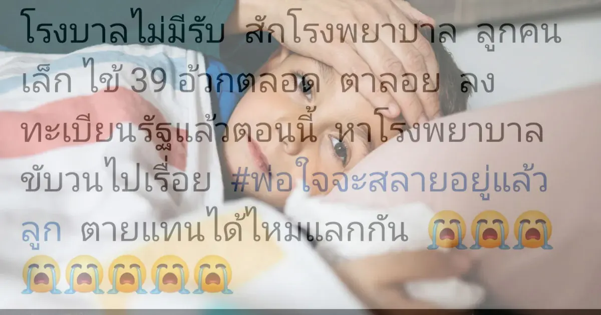 โรงพยาบาลไม่มีรับ สักโรงพยาบาล ลูกคนเล็ก ไข้ 39 อ้วกตลอด ตาลอย ลงทะเบียนรัฐแล้วตอนนี้ หาโรงพยาบาลขับวนไปเรื่อย #พ่อใจจะสลายอยู่แล้วลูก ตายแทยได้ไหมแลกกัน