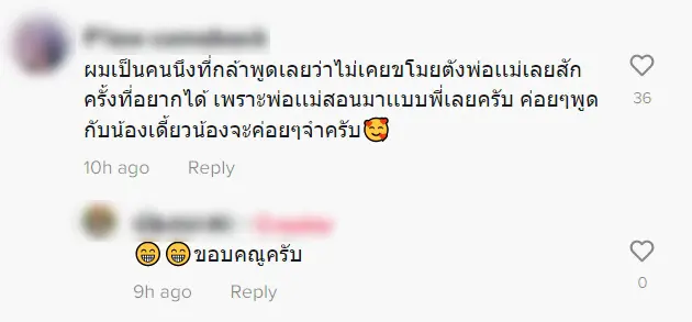 อย่างกรณีนี้ ผู้ใช้ TikTok รายหนึ่งได้โพสต์คลิปลูกชายตนเองที่ได้ขโมยเงินพี่ไป ซึ่งเงินที่ขโมยมานั้นเป็นแค่เหรียญ แต่ก็ปล่อยไม่ได้จึงต้องเรียกมาว่ากล่าวตักเตือน โดยภายในคลิปจะเห็นได้ว่า ผู้ใหญ่ที่อยู่บริเวณนั้นไม่ว่าจะเป็นพ่อ-แม่หรือคนอื่น ไม่มีใครเลยที่จะใช้กำลังในการลงโทษ ถึงแม้ตัวพ่อจะถือไม้อยู่ก็ตาม ใช้แค่เพียงวาจาในสั่งสอนให้รู้สิ่งที่ควรและไม่ควรเท่านั้น