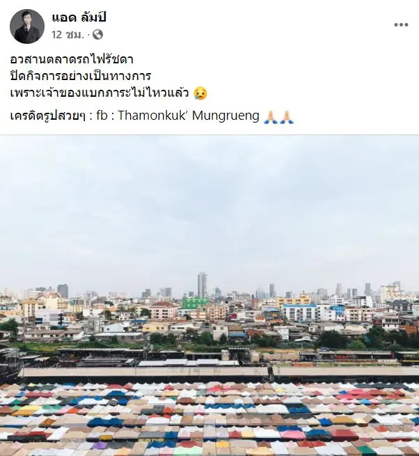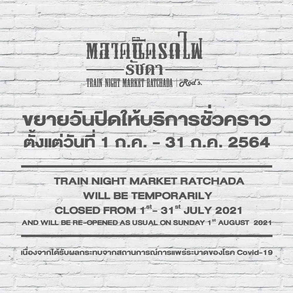 30 ก.ค. 64 เพจเฟซบุ๊ก แอด ลัมป์ ได้โพสต์รูปภาพ ตลาดรถไฟรัชดา พร้อมข้อความระบุว่า อวสานตลาดรถไฟรัชดา ปิดกิจการอย่างเป็นทางการ เพราะเจ้าของแบกภาระไม่ไหวแล้ว