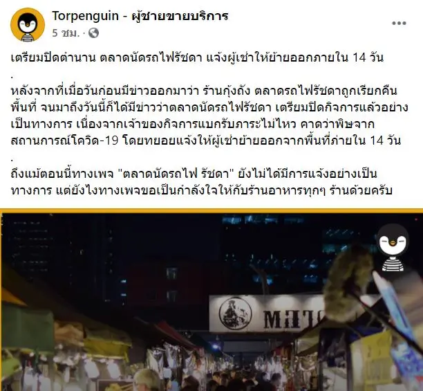ปิดตำนาน ตลาดรถไฟรัชดา หยุดกิจการถาวร แบกภาระไม่ไหว คาดสถานการณ์โควิดเป็นต้นเหตุ พร้อมสั่งร้านค้ารื้อภายใน 14 วัน