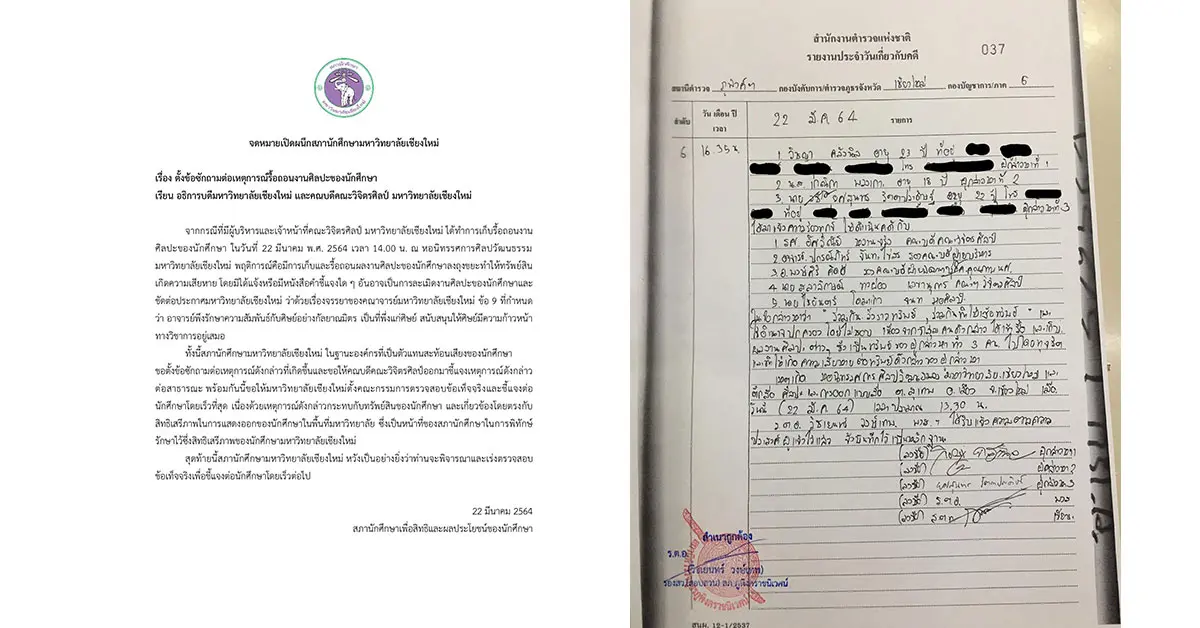 ต่อมาในเวลา 17:00 น. ของวันที่ 22 มีนา 2564 กลุ่มนักศึกษาเจ้าของผลงานที่ถูกทำการรืhอถอน เมื่อช่วงบ่ายที่ผ่านมา รวมตัวกันเดินทางไปยังสถานีตำรวจ เพื่อลงบันทึกประจำวันเกี่ยวกับเหตุการณ์ที่เกิดขึ้นเมื่อบ่ายที่ผ่านมา ในข้อกล่าวหา