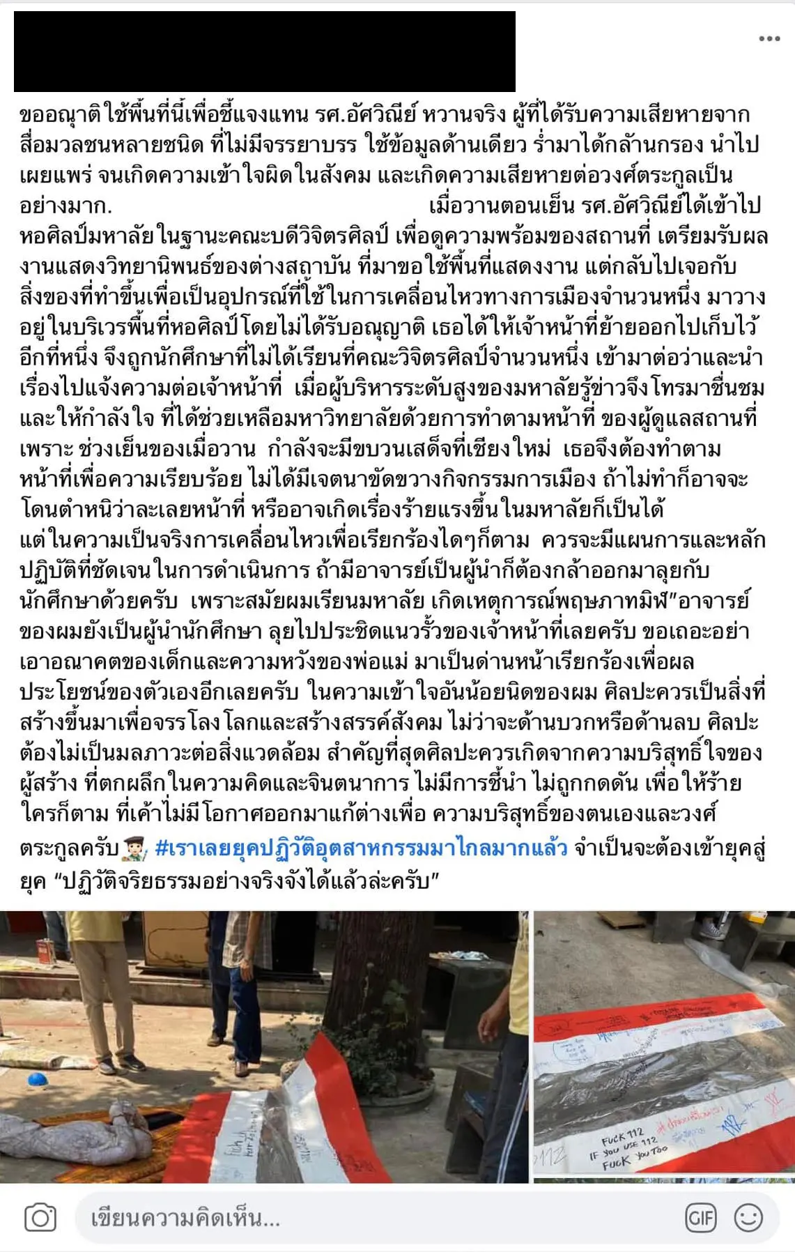 + ล่าสุด! นักศึกษาวิจิตรศิลป์ มช. ออกแถลง ถึงผู้ใหญ่ เหตุจากการรื้อถอนผลงานอย่างไร้เหตุผล +