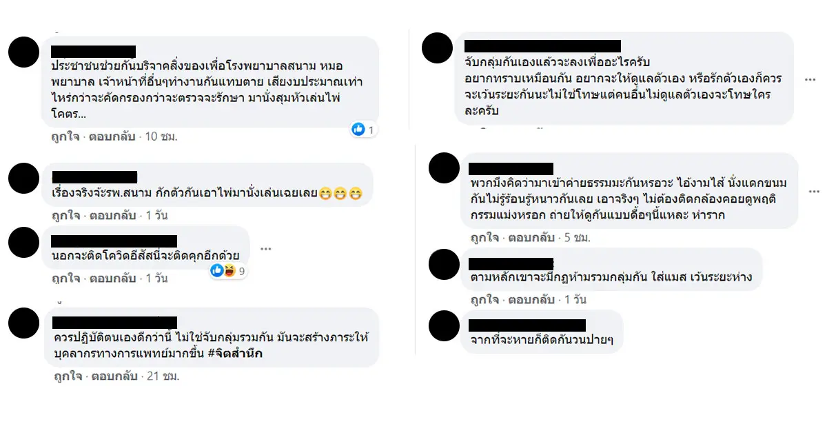 กลายเป็นประเด็นให้ชาวเน็ตต้องพูดถึงอีกแล้ว แต่ครั้งนี้ไม่เหมือนเดิม เมื่อชาวเน็ตเสียงแตกเป็นสองฝ่าย เหตุป่วยติดเชื้อโควิด-19 ที่เข้ารับการรักษาที่โรงพยาบาลสนาม จับกลุ่มกลุ่มนั่งคุยด้วยกัน นั่งทานอาหารด้วยกัน อีกทั้ง บางกลุ่มขึ้นขั้นตั้งวงเล่นไพ่กันกลางรพ.สนามเลย เรืองนี้กลายเป็นที่พูดถึงในเรื่องความเหมาะสม และ มาตราการดูแลของโรงพยาบาลสนาม