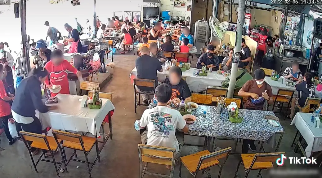 อย่างเหตุการณ์นี้ ผู้ใช้ TikTok รายหนึ่งได้โพสต์คลิปจากกล้องวงจรปิดภายในร้านก๋วยเตี๋ยวเรือ ซึ่งจากคลิปเป็นช่วงเวลาสั้นๆแต่กับเผยให้เห็นถึงความมีน้ำใจของสาวใหญ่คู่หนึ่ง จะเห็นได้ว่าสาวใหญ่ได้เข้ามารับประทานก๋วยเตี๋ยวในช่วงเวลาที่มีคนเยอะ ด้วยความที่เห็นมีลูกค้ายื่นรออยู่ด้านนอกมากมาย ทั้งคู่จึงรีบรับประทานให้เสร็จแล้วลุกทันที ไม่เพียงเท่านั้นทั้งคู่ยังช่วยเคลียร์เก็บโต๊ะทำความสะอาดให้พร้อมใช้งานอีกด้วย