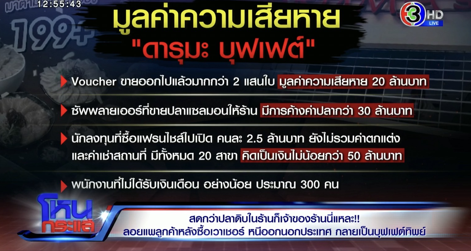 ดารุมะ ซูชิ กรณีฉอโกง Voucher 199 บาท เปิดมูลค่าความเสียกว่า 100 ล้านบาท เจ้าของบินเงียบ รวมผู้เสียหายแล้วเกือบหมื่นราย