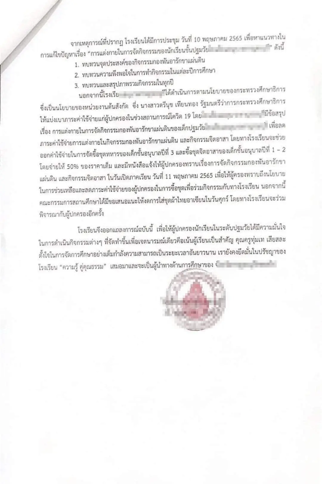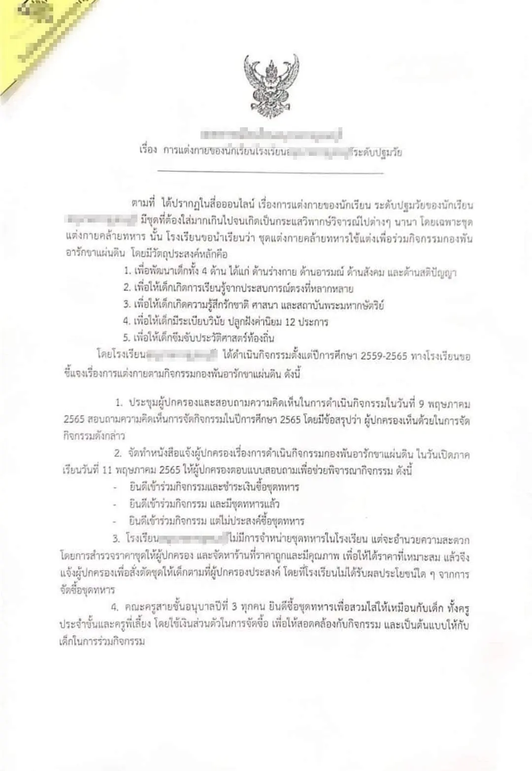 “โรงเรียนออกมาชี้แจงเรื่องให้เด็กนักเรียนแต่งชุดทหารไปเรียนทุกวันพฤหัสบดีแล้วครับ