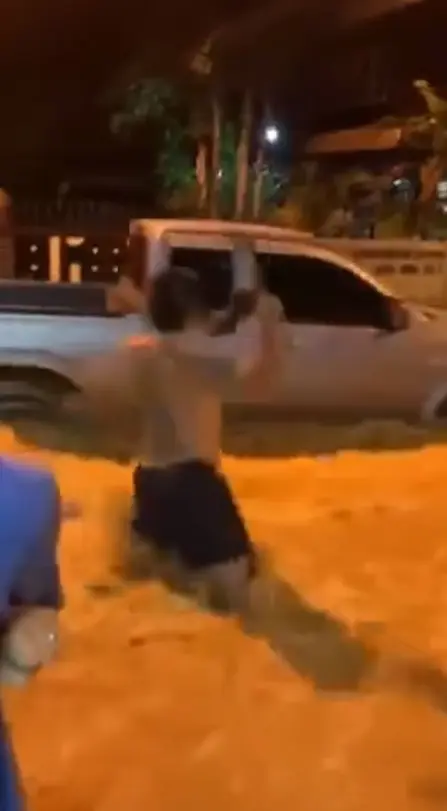 เกินไปไหม! ขับรถแหกทางกั้น ฝ่าน้ำท่วม อย่างไว โนสนโนแคร์ ว่าเป็นหมูบ้าน จนชาวบ้านสุดทนถึงกับ ถอดรองเท้าปา!