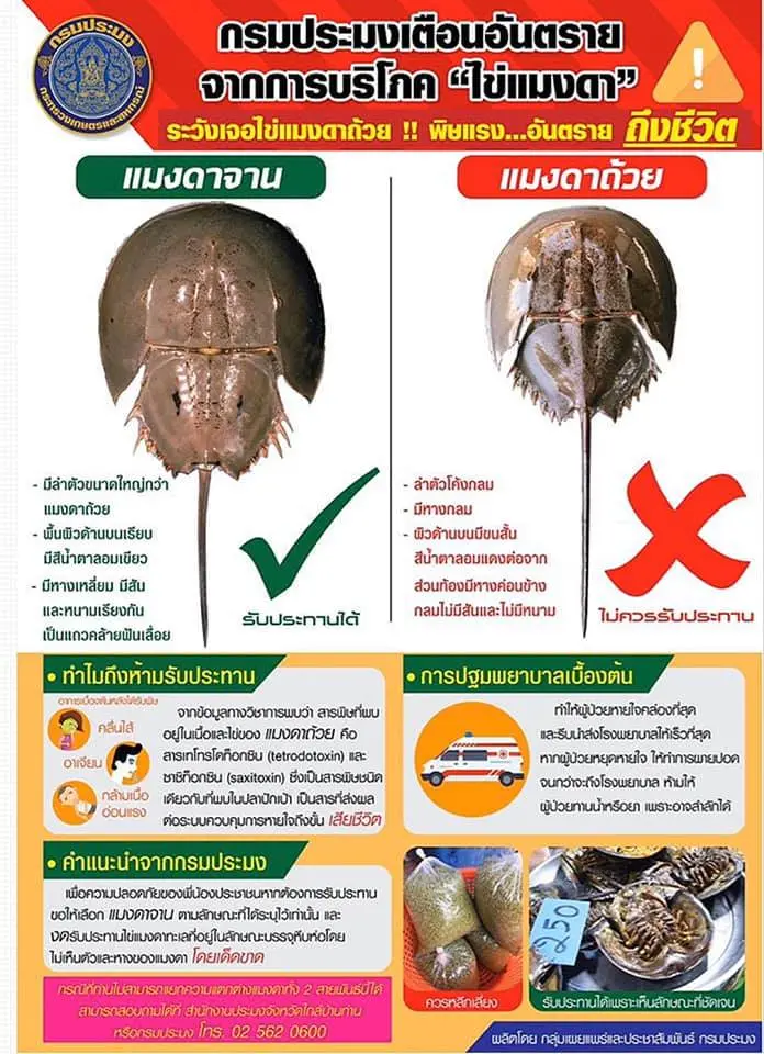 Drama-addict เตือนภัยประชาชน ซื้อ ไข่แมงดา ระวังเจอชนิดมีพิษรุนแรง แนะแยกให้ออกระหว่าง แมงดาจาน และ แมงดาถ้วย