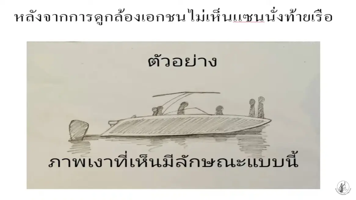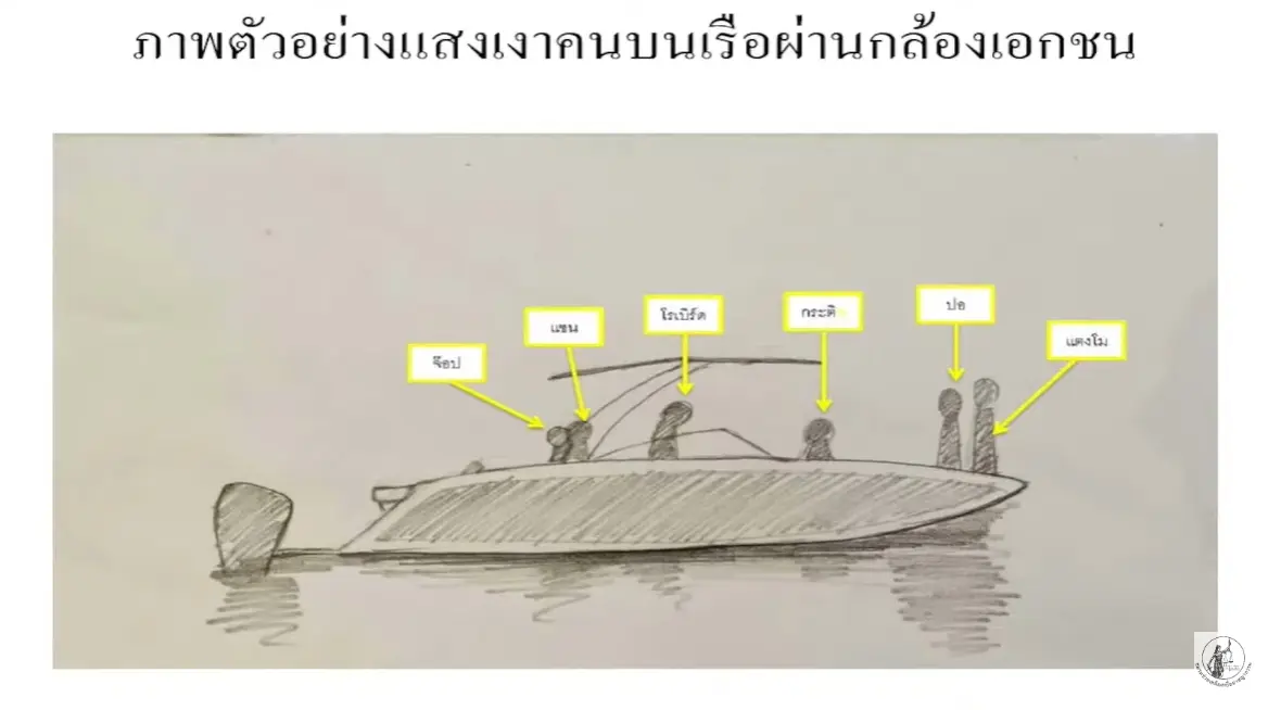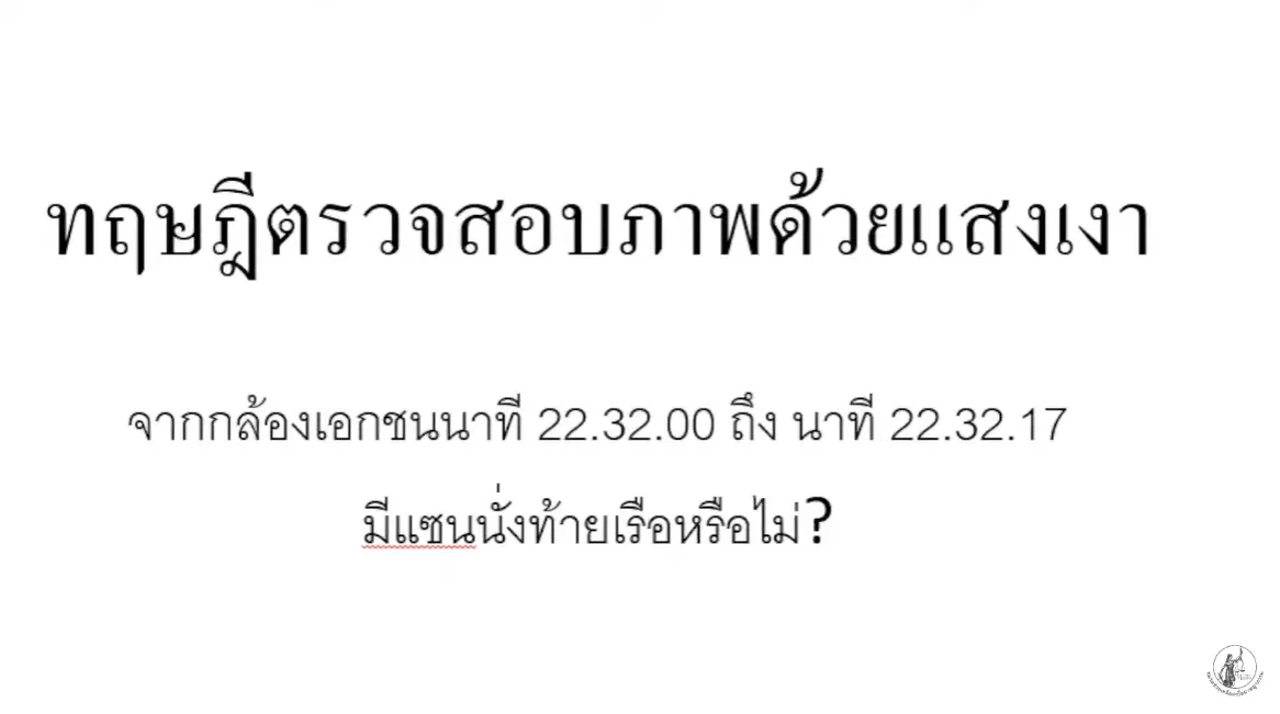 โดยผู้เชี่ยวชาญได้กล่าวถึงทฤษฎีแสงและเงา ซึ่งจะเอามาอธิบายและไขคดีแตงโมนี้ ซึ่งผู้เชี่ยวชาญได้นำช่วงวินาทีที่ทางตำรวจอ้างว่าพบ แซน วิศาพัช นั่งอยู่ด้านท้ายเรือผ่านหน้ากล้องของเอกชน ซึ่งในส่วนของทางอัจฉริยะและผู้เชี่ยวชาญได้นำคลิปเดี่ยวกันมาปรับแต่งแล้วพบว่าจากคำที่ตำรวจกล่าวอ้างนั้น “ไม่พบแซนนั่งอยู่ท้ายเรือ”