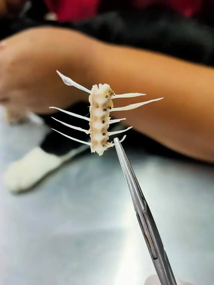 ผู้ใช้เฟซบุ๊ก Wararak Pannoy ได้ออกมาโพสต์ภาพบาดแผลโดยได้เผยรายละเอียดว่า “กรณีเคสนี้เป็นที่เข้ามารักษาที่คลีนิกวันนี้ เจ้าของสัตว์น้องแมวมาด้วยอาการ กินก้างปลา น้องตะกุยปากจนเลือดออก เจ้าของเลยพามาหาหมอค่ะ หมอจึงได้ขออนุญาตเจ้าของถ่ายรูป เพื่อเก็บไว้เป็นอุทาหรณ์แก่เจ้าของท่านอื่นๆที่ยังมีการให้ปลาโดยไม่แกะก้างออก”