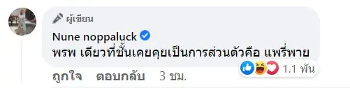 ล่าสุด นุ่น นพลักษณ์ ก็ได้ออกมาพูดเกี่ยวกับเรื่องนี้แล้ว โดยระบุว่า “นุ่น นบลัก = ไม่เคยคุยกับพิมรี่พายส่วนตัวสักคำเดียวค่ะ ถ้าแพรี่พายอ่ะเคยคุย”