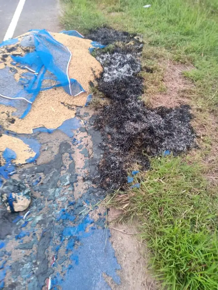 เมื่อวันที่ 7 พ.ย. เพจ บิ๊กเกรียน ได้โพสต์รูปภาพและข้อความระบุว่า “ชาวนาบ้านโพธา ศรีสะเกษ ได้ ตากข้าวไว้ริมถนน ตื่นมาเห็นสภาพข้าว ถูกจุดไฟเผา ยิ่งข้าวไม่มีราคา ฝนฟ้า พัดต้นข้าวล้มราบเป็นหน้ากอง ฝากเพื่อนๆ ที่ตากข้าวริมทาง หมั่นออกมาดู ไม่รู้ฝีมือใคร”