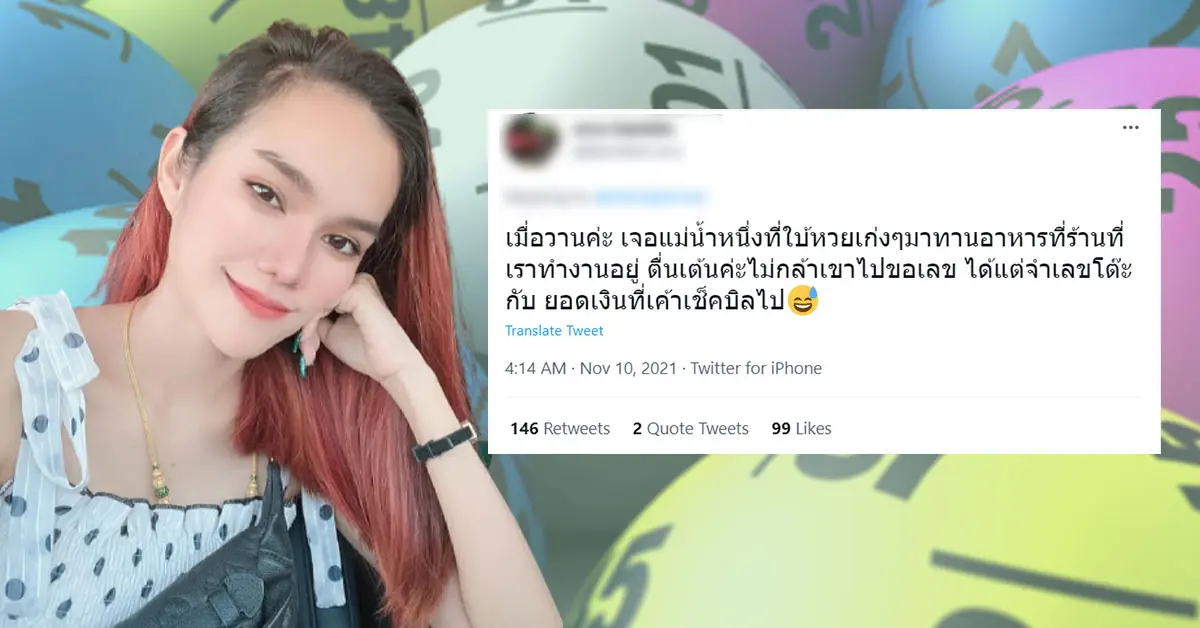ก็ยังดีกว่าไม่ได้อะไรเลย มิติใหม่คอหวย! FCเจอ”แม่น้ำหนึ่ง“ที่ร้านอาหาร ตื่นเต้นไม่กล้าขอเลข แต่ไม่พลาดที่จะจดเลขโต๊ะกับยอดเช็คบิลมาแทน