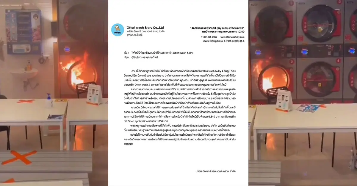 เรื่อง ไฟไหม้ผ้าในเครื่องอบผ้าที่ร้านสะดวกซัก Otteri wash & dry