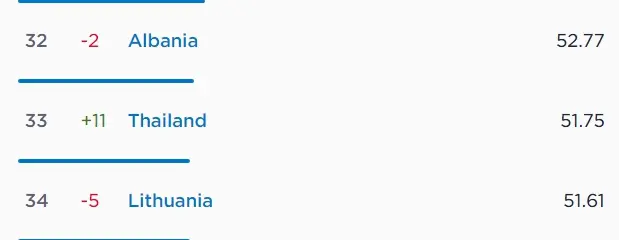 ส่วนอินเทอร์เน็ตมือถือของไทยนั้นอยู่อันดับที่ 33 ขึ้นมา 11 อันดับจากเดือนพฤศจิกายน มีความเร็วเฉลี่ยอยู่ที่ 51.75 Mbps ซึ่งอันดับที่ 1 ตกเป็นของประเทศ กาตาร์ ที่มีความเร็วเฉลี่ย 178.01 Mbps