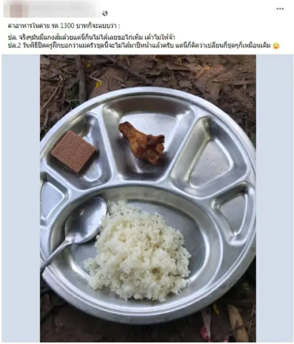กลายเป็นกระแสในโลกออนไลน์ เมื่อ หนุ่มสุดทนโพสต์แชร์ อาหารในค่ายรด. เสีย 1,200 ขอไก่เพิ่มเขาก็ไม่ให้