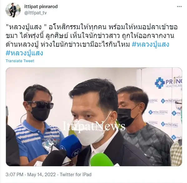 ล่าสุดผู้ใช้ Twitter ชื่อว่า ittipat pinrarod ได้โพสต์คลิปการให้สัมภาษณ์ของลูกศิษย์หลวงปู่แสง พร้อมระบุข้อความว่า