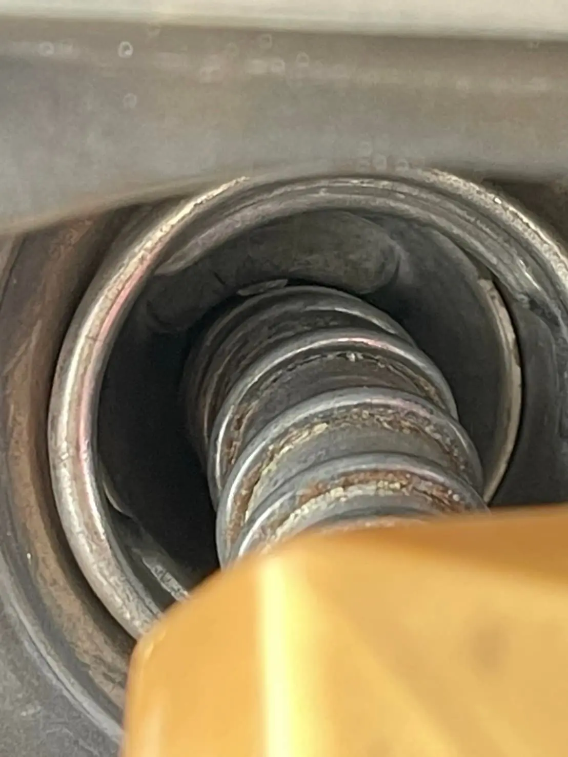หลังเติมน้ำมันเสร็จเกิดปัญหาดึงหัวจ่ายน้ำมันไม่ออก (จากการที่ยัดกระแทกหัวจ่ายเข้าไป)