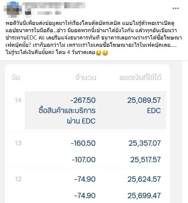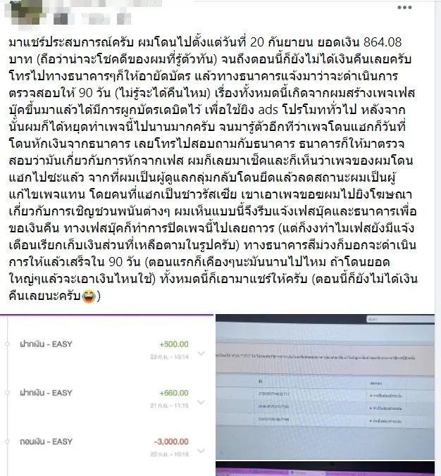 ผู้เสียหายจำนวนมาก แห่แชร์ประสบการณ์ผ่านกลุ่มเฟซบุ๊กชื่อดัง เงินหายจากบัญชี พร้อมสรุปชัดได้เงินคืนจากธนาคารหรือไม่