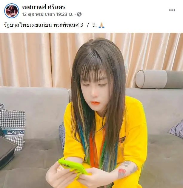 โดย เซียนเนสกาแฟ ได้โพสต์รูปภาพและข้อความในเฟซบุ๊ก “เนสกาแฟ ศรีนคร” ระบุว่า รัฐบาลไทยเลขแก้บน พระพิฆเนศ 3 7 9 อีกทั้งยังโพสต์รูปภาพลอตเตอรี่จำนวนมาก ซึ่งเป็นเลขท้าย 2 ตัว คือ 79 – 97 – 50 จำนวนมาก