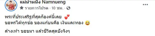 ล่าสุด ไบรท์ทูเดย์ (Bright Today) ตรวจสอบเพจเฟซบุ๊กของ แม่น้ำหนึ่ง “แม่น้ำหนึ่ง Namnueng” โพสต์ข้อความว่า หนูเกิด 19 ธันวาจิงๆค่ะ ไม่ได้ใบ้หวย แล้วก็มีคนมาที่บ้านจิงๆ โพสต์อะไรก็ด่า โดนว่า ไม่ชอบข่อยแต่หมู่เจ้าคือพากันเบิ่งคักแท้