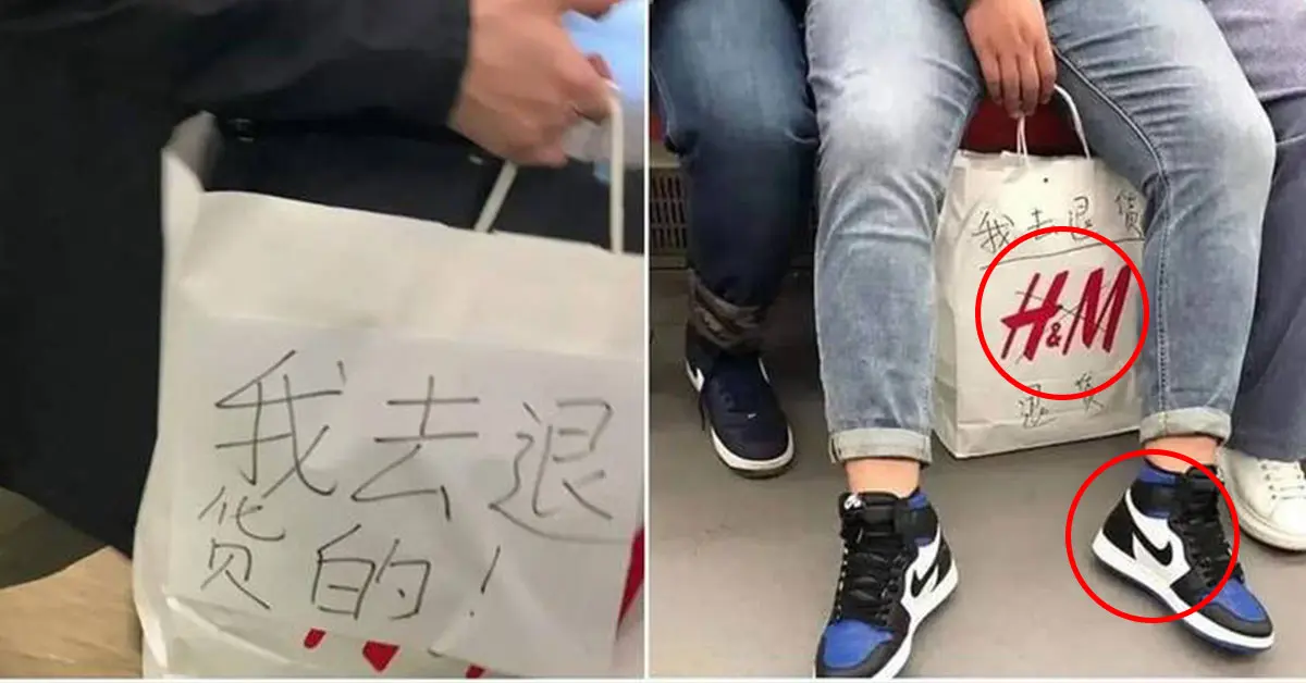 ยังไงกันนะ? ชาวเน็ตจีนงง เมื่อเจอหนุ่มจีนบนรถไฟฟ้าที่กำลังนำของไปคือ H&M และกลับใส่รองเท้าคู่ใหม่แกะกล่องจากแบรนด์ Nike