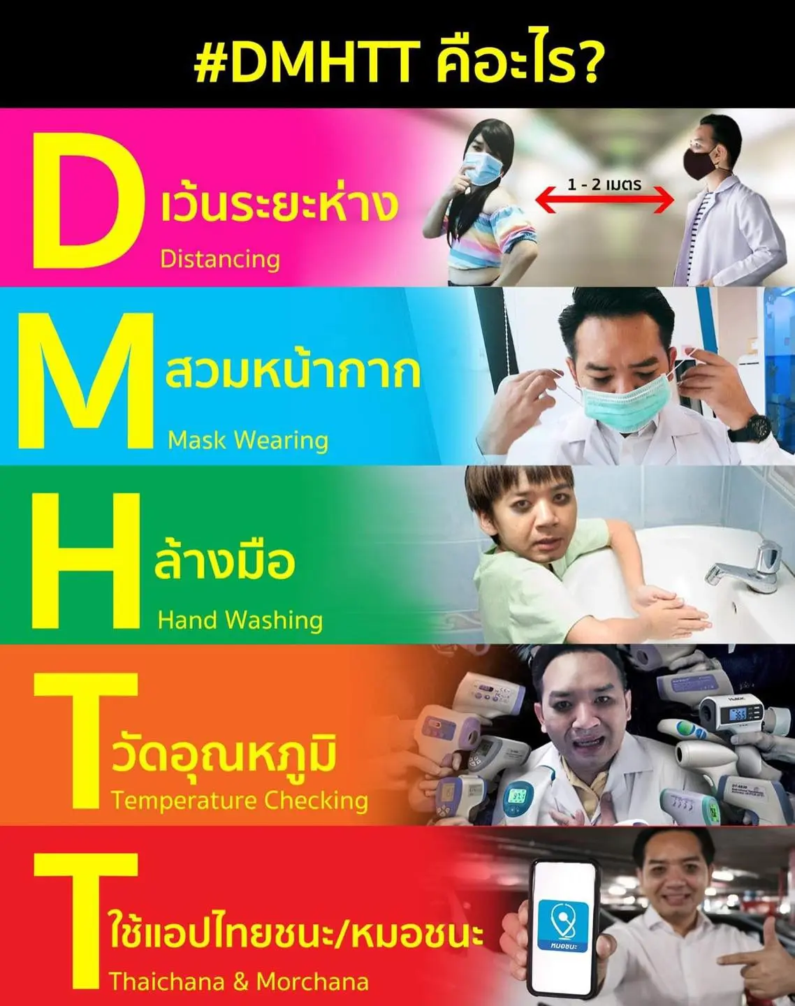 โดย หมอแล็บแพนด้า ได้โพสต์ผ่านเฟซบุ๊กถึงมาตรการป้องกันโควิดตัวย่อ DMHTT ดังนี้