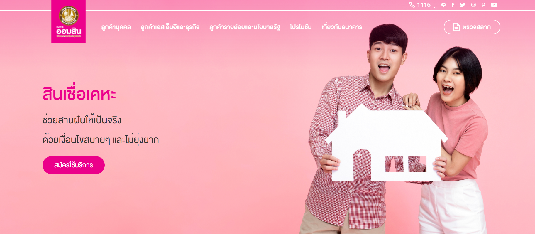 ธนาคารออมสิน สานฝันของเราให้เป็นจริง สินเชื่อบ้าน ช่วยสานฝันเรื่องบ้านให้เป็นจริงด้วยเงื่อนไขสบายๆ ธนาคารออมสินเข้าใจและรู้ซึ้งถึงความต้องการมีบ้าน ซึ่งจะเป็นรากฐานสำคัญของการเริ่มต้นชีวิตที่ดี จึงมุ่งส่งเสริมและช่วยสานฝันของท่านให้เป็นจริง ด้วยเงื่อนไขสบายๆ และไม่ยุ่งยากอย่างที่คิด จบทุกความต้องการเรื่องบ้านที่เดียวครบ